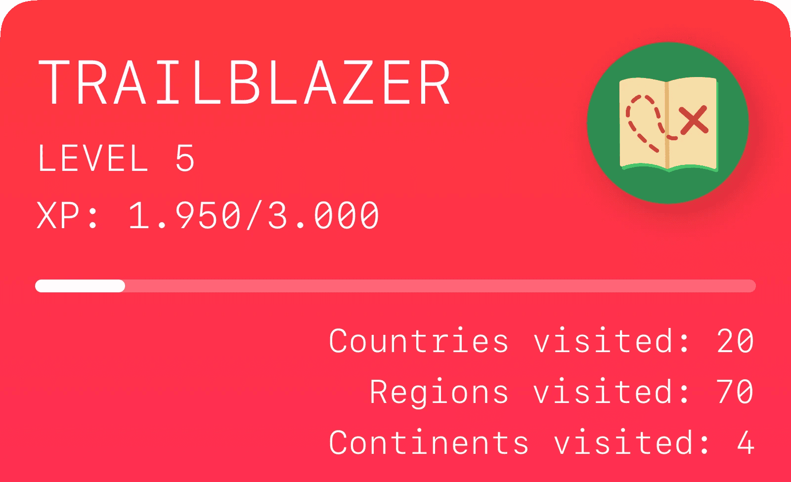 Level Up as you travel the world and discover new continents, countries and regions